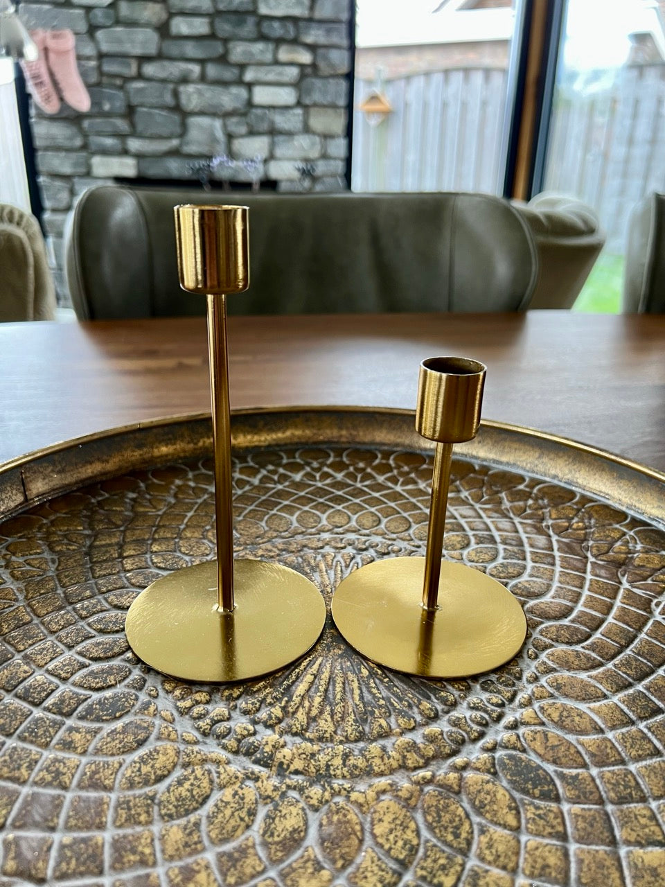 Voor een vleugje subtiele verfijning in je interieur is er onze Metalen Kaarshouder, beschikbaar in een elegante goudkleur en in twee verschillende afmetingen. Deze kaarshouder voegt een vleugje glamour toe aan elke ruimte.