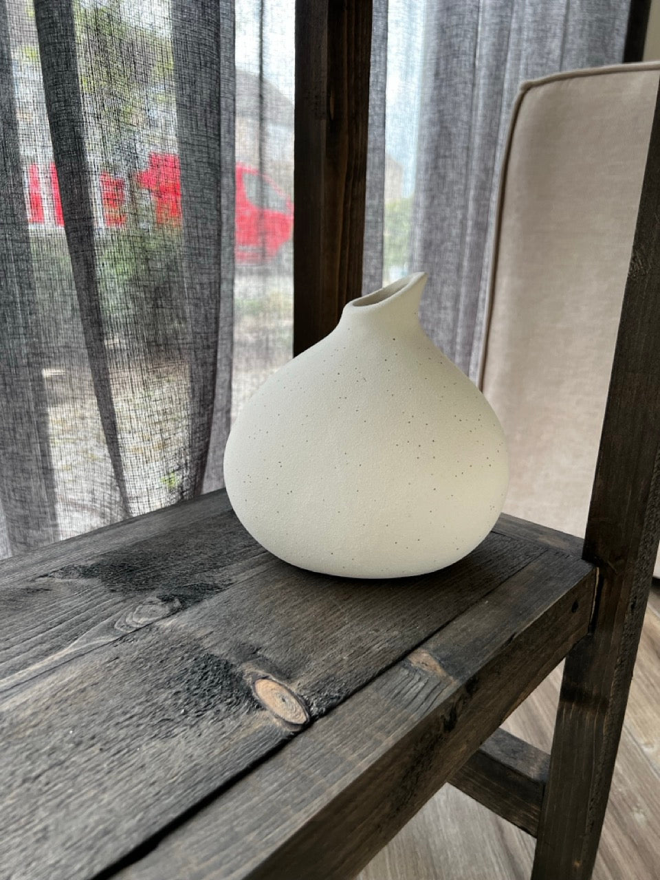 Beide vazen zijn vervaardigd van hoogwaardig keramiek en hebben een prachtige organisch ronde vorm die perfect past binnen een modern, Scandinavisch of minimalistisch interieur. Of je nu kiest voor één vaas als subtiele blikvanger, of ze samen combineert als stijlvolle set – met de ASSAGO vazen creëer je direct een warme en rustgevende uitstraling in elke ruimte.