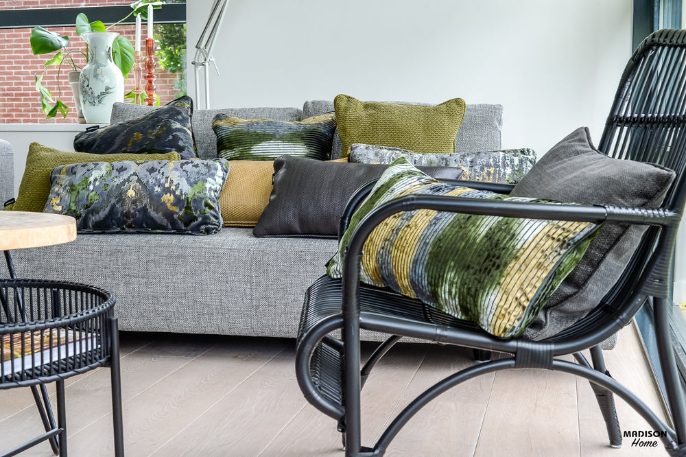 Very high-quality decorative cushion from Madison Home. This green color can be combined very nicely with the other decorative cushions from the Madison collection. The decorative cushion has dimensions of 60 x 60 cm and is therefore nice and large.