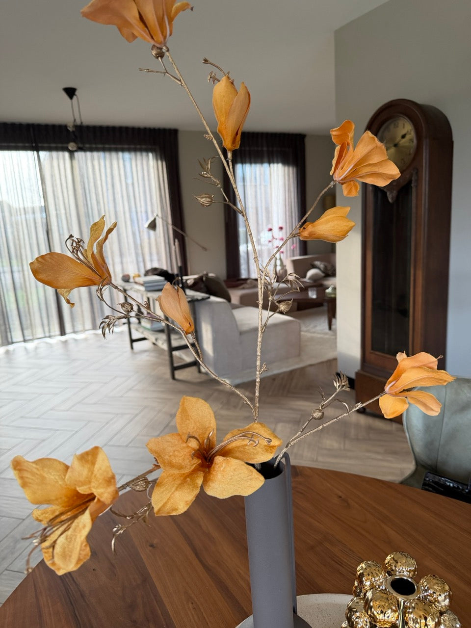 Bauhinia branch – 114 cm hoog – oranje/goud