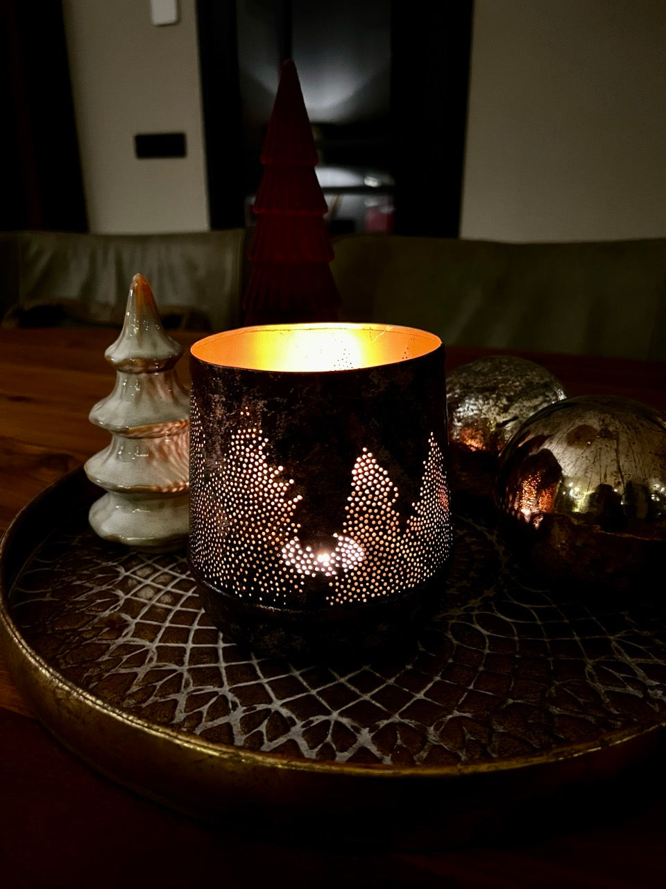 4. High-quality Metal: Made from durable metal, this candle holder guarantees strength and long-lasting quality. The detailed holes in the shape of Christmas trees provide a beautiful spectacle.