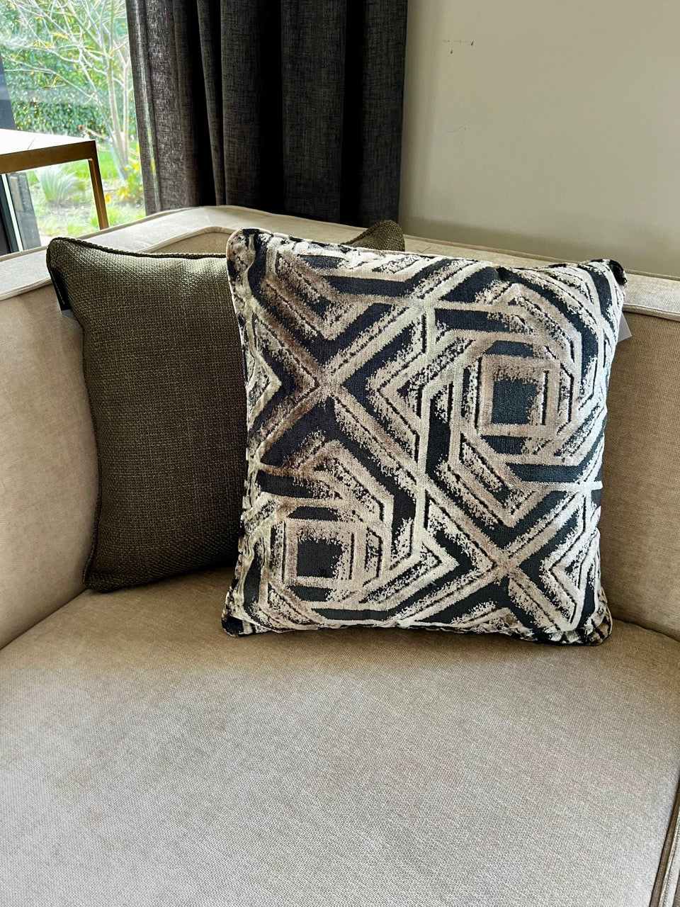 In de foto is het sierkussen gecombineerd met de Nola Green.